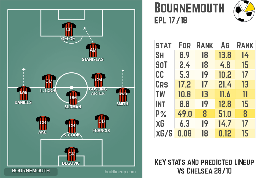 Bournemouth’s numbers are still a mess across the board despite their win last week, and they should arguably be even lower in the table than their current 19th place (an impressive feat, sort of!). Chelsea haven’t been anywhere near as dominant as last season on the stats front either, but this is a nice spot for them to continue running good and pick up a win on the road against a terrible Bournemouth side. Eddie Howe was finally forced to start his best striker Afobe last week and he’s very cheap on both sites, but I can easily see Defoe getting the nod again instead and they are facing Chelsea after all. It’s a stretch to use any Bournemouth players this weekend.