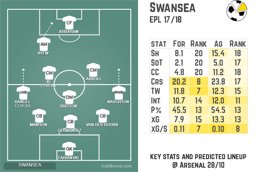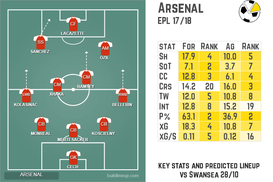 Arsenal still have some issues without the ball, but even after shooting 19 times against Leicester last week Swansea still rank 20th in shots per game. I won’t be touching any Swansea players this weekend, and Arsenal defenders are strongly in play on Yahoo. I’m less interested in the fullbacks on DraftKings – Kolasinac only has 8 crosses all season (0 in his past 2 games) and Bellerin is an assist or bust player thanks to low tackle and interception numbers. Petr Cech looks likely to pick up a win and clean sheet but he might not make a single save in the process, so his upside is limited for GPPs.