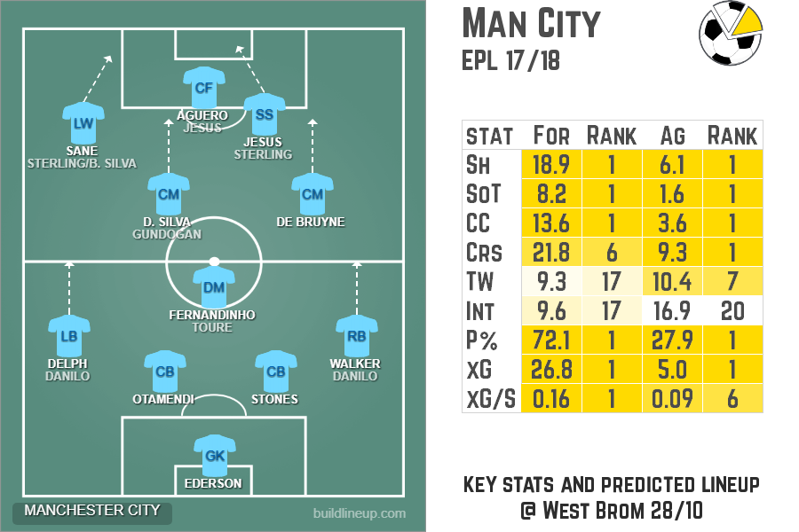 I’ll be interested to see the ownership on City players this week, as I suspect people might gravitate more towards the likes of Arsenal, Liverpool and even Chelsea on this slate. I certainly hope that’s the case because I’m not scared of the West Brom defence, especially with the likes of Dawson and Evans potentially missing this game. League average teams are taking 12.7 shots per game in total – City are averaging that many shots from inside the box! West Brom are right at league average in terms of shots in the box allowed, so it should be business as usual here for Pep’s team. Only Brighton and Leicester have allowed more final 3rd passes than West Brom so far this season, which doesn’t bode well when you have to face KDB and Silva, who rank 1st and 2nd in the league in successful passes into the opposition box (per Statsbomb). West Brom have been good so far in terms of xG and xG/Sh against, but Pulis could play 10 DMs and CBs and I still wouldn’t want to fade City here.