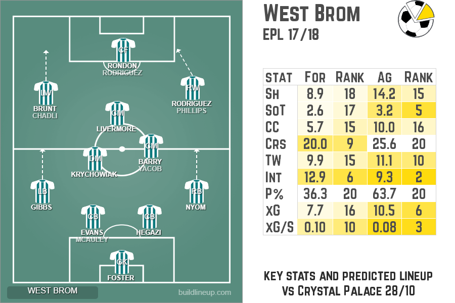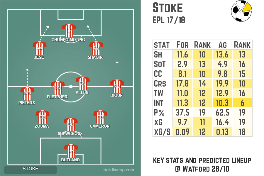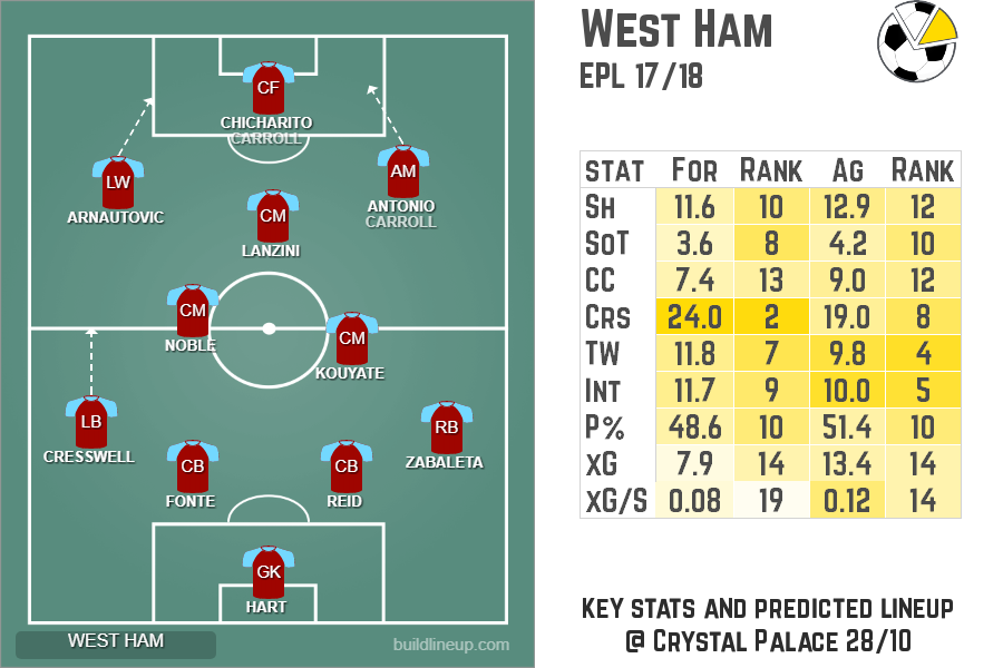 On paper it looks like West Ham should have an above average attack but they have really struggled so far this season, ranking 14th in xG and 19th in xG/Sh. A 3-0 thrashing by Brighton last week doesn’t inspire confidence, and it feels like Bilic has been on his final warning for over a year now. A match against Palace is an ideal prospect for Slavan, but it won’t be easy for the Hammers and they will probably have to score more than once to win this game. That said, the second team did beat Spurs midweek, so there is at least a shred of hope for the West Ham attack here.